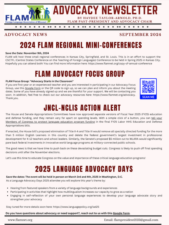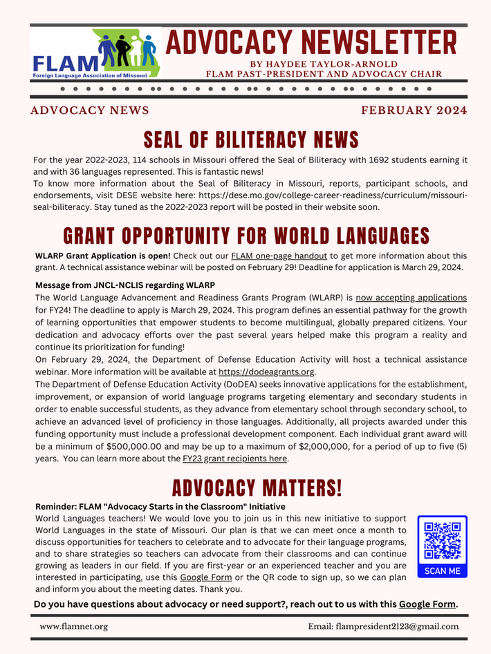 Click the button above to access the FLAM advocacy folder for resources on for field trips, language days, honoring students and more!